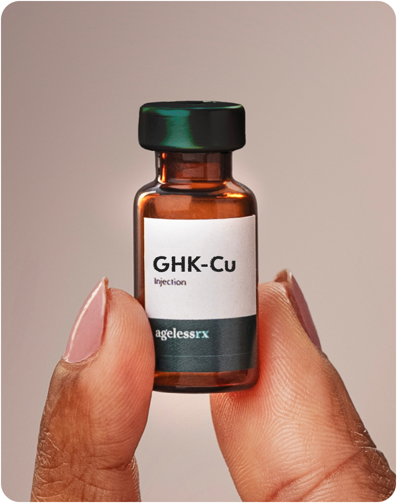 GHK-Cu (Copper Tripeptide-1) is a naturally occurring peptide found in the body that supports skin repair and renewal processes, including collagen production and overall skin quality.4 Levels of GHK-Cu naturally decline with age.1 While GHK-Cu is not FDA-approved to treat medical conditions, it is commonly used in cosmetic dermatology for skin appearance and rejuvenation.2